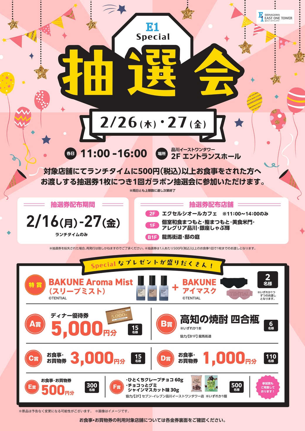| E賞 | お食事・お買物券 500円分 | 300名様 |